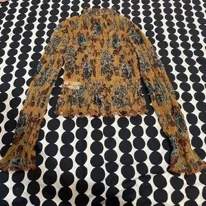 Free People Mesh Floral Ruffle Long Sleeve Top, Sz Small