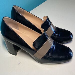 Franco Sarto Womens Heels Size 7 / 37 Black Patent Leather 3" Block Heel Shoes