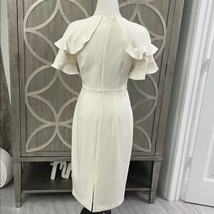 Chic cream midi dress with elegant ruffle sleeves. Perfect for any occasion. Only worn once