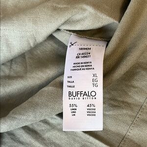 made in Kenya Buffalo David Bitton Women's Linen Blend Utility Button Front Shirt. It is made from a breathable blend of 55% linen and 45% viscose