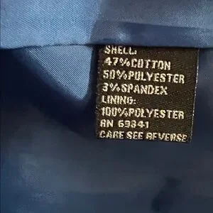 Shell: 47% Cotton/50% Polyester/3% Spandex