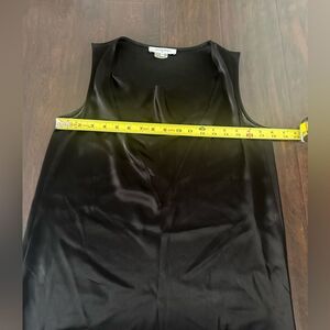 Gerard Darel black sleeveless satin blouse size 38. Has a beautiful v neck look on the front. Some signs of wear under the arms-