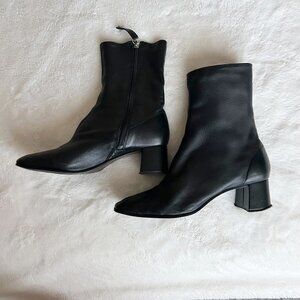 ZARA Black genuine Leather Block Heeled Soft Ankle Boots stretch US 7.5 EUR 38