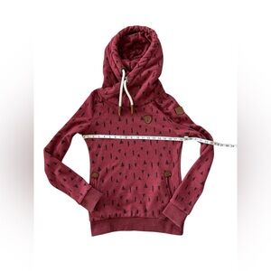 Wanakome Artemis Cowl Neck Hoodie Sweatshirt Cranberry Pine Trees M