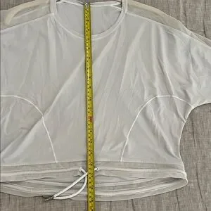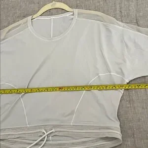 Features a breathable sheer mesh design with a drawstring hem for an adjustable fit. Super flattering for layering over sports bras or tanks.
