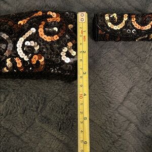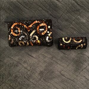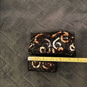 Elegant sequin mini clutch and lipstick case purse set in black/gold and copper. Perfect for adding a touch of glamour to any outfit.