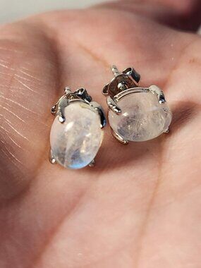 VTG NIB 925 Natural Clear Blue Fire Rainbow Moonstone Stud Earrings My Last One