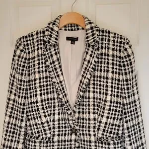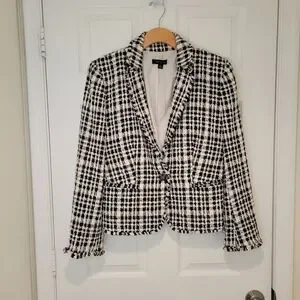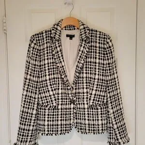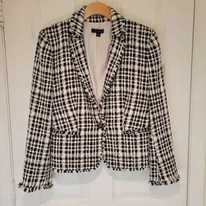 ANN TAYLOR TWEED Yellow Black and White Plaid Women's Blazer. Sz 10. Preppy, feminine and often mistaken for CHANEL. Perfect for both professional and casual settings, this blazer offers a chic, timeless and tailored look. Boss Vibes. Looks rich!