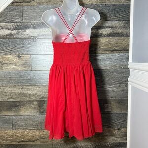 Love Fire Red Spaghetti Strap Fit & Flare Mini Dress Smocked Women’s Medium
