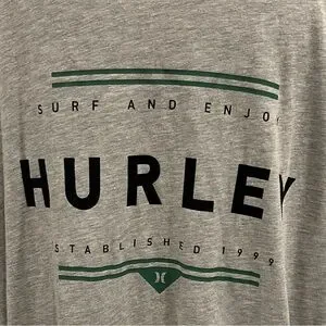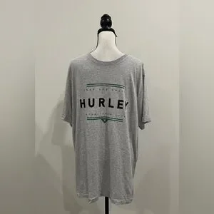 Hurley tee. Grey, black, and green. Crewneck. Short sleeves. Lightweight. Size XL. New without tags.