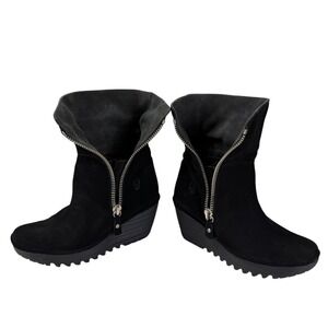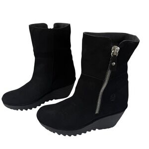 Fly London Yex Suede Wedge Boots Black US8 EU39 Ankle Zip Platform Comfort Shoes