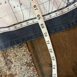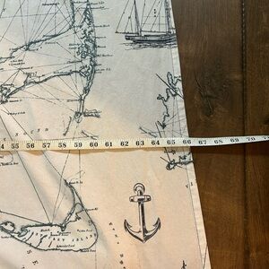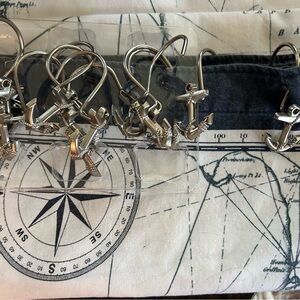 Stylish vintage shower curtain with nautical anchor print. Features navy and white colors. 66x70” Comes with 12 heavy Anchor curtain rod hooks.