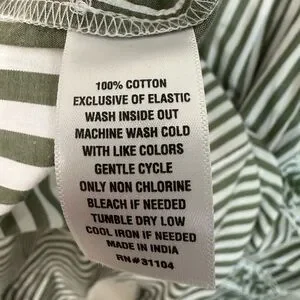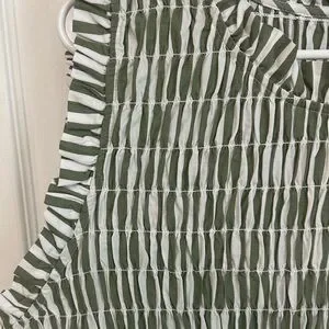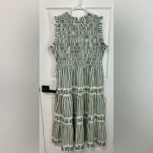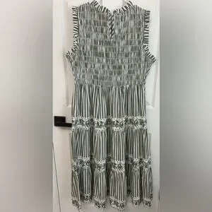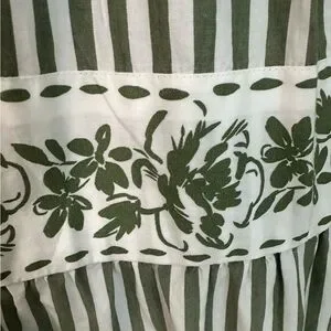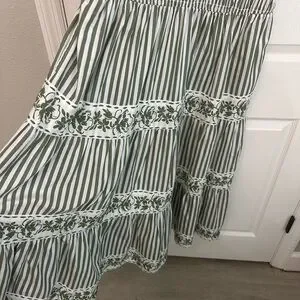 Crown & Ivy 100% cotton dress green white striped pattern Size 16 Elastic Top