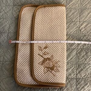 Vintage Woven Straw Clutch, with a floral embroidery design