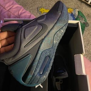 Stylish Nike Adapt Auto Max sneakers. Features a sleek black design with blue accents. Perfect for casual wear. Shoes light up and are battery operated. Comes with battery and charging station. Sz in women’s 8 1/2