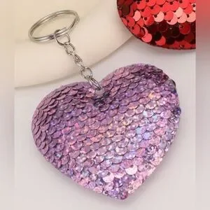 Sparkling purple sequin heart keychain. Perfect for adding a touch of glam to your keys.
