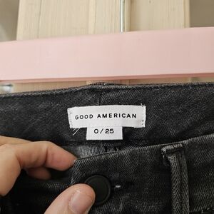 Good American Good Waist Fray Hem Crop Skinny Jean Womens 0/25 Black Ultra High