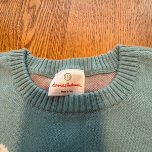 Hanna Andersson 120 US 6 Girls Turquoise Ski Bunny Sweater EUC