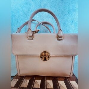 Tory Burch Duet Chain Convertible Satchel Shoulder Strap Hand Bag Purse Pink EUC