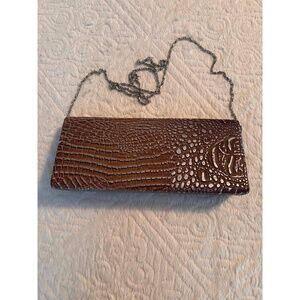 EXPRESSIONS NYC Clutch Bag Brown Silver Crocodile Embossed Chain Strap Chic Glam