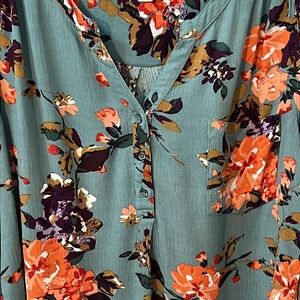 Market & Spruce Women's Spring Floral Teal Top Size XL