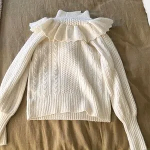 Madewell Zanzibar Cream Ruffled Turtleneck Cable-knit Sweater
