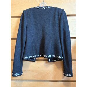 LIKE NEW St. John Collection Silk Ribbon Trimmed Charcoal Knit Jacket, Size: 4