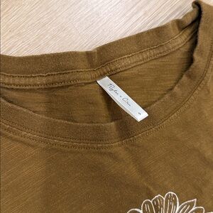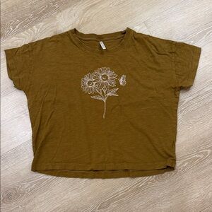 Floral graphic tee from Rylee & Cru, excellent condition, size women’s small. Greenish brown in color. Boxy and cropped style. 100% cotton. Measurements lying flat: 20 inches across bust, 20.5 inches from top of shoulder to bottom hem