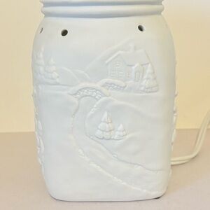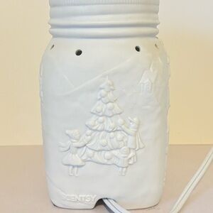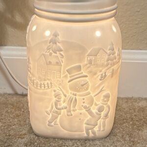 Scentsy “Let It Snow” Mason Jar Style White Raised Christmas Scene Retired