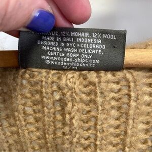 Gorgeous women’s Anthropologie Wooden Ships Black Brown Color Block Mohair Wool Blend Open Front Knit Sweater - super soft and cozy
