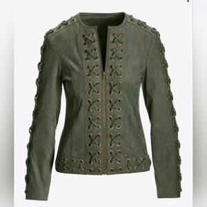 Stylish green faux suede jacket with lace-up detailing. Perfect for versatile wear. size med. perfect condition. never worn! new without tags.
