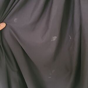 has a few spots on the back, could possibly be washed off. perfect sheer lightweight dress with puff medium length sleeves. unlined.