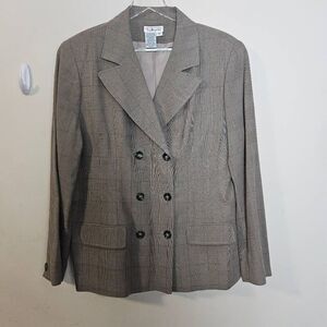 Vintage Talbots Double Breasted Boyfriend Blazer Suit Career Plaid Black White S