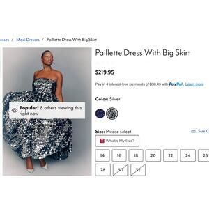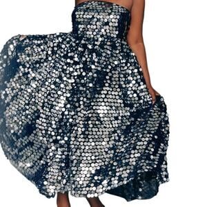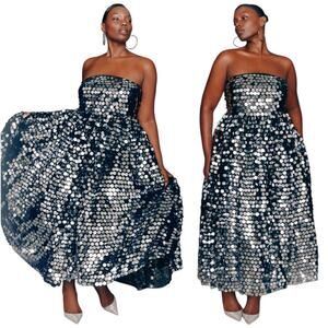 NWT ELOUII Silver Paillette Strapless Dress With Full Skirt $219 Size 18
