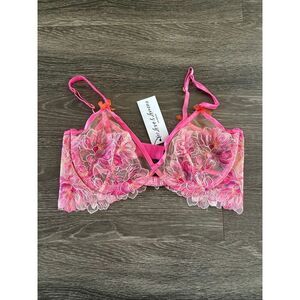 NWT For Love & Lemons Hibiscus Embroidery Pink Floral Underwire Bra Size 38C