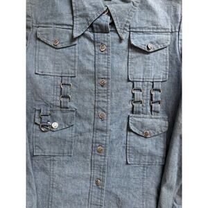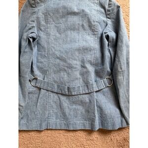 VTG Denim Utility Jacket Womens Small Blue Button Front Pockets D Ring Detail