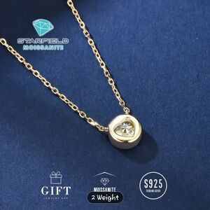 GRA CERTIFIED 0.5 Carat 14k Gold Plated Golden Bubble Moissanite Pendant. This wiggly make a lecture gift. It comes in a beautful box, with a silver polishing cloth jewelry care instructions and Zhra certificate card of authenticity and limited lifetime warranty. The sparkly 0.5 carat Moissanite ✨️ are a great size. They are set in 14k gold plated over sterling silver. In the ban of the pendant is an open heart ❤️. Reasonable offers are welcome