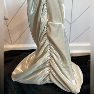 Express Cream Velvet Ruched Bodysuit Shimmery Elegant Holiday Party Top Size M
