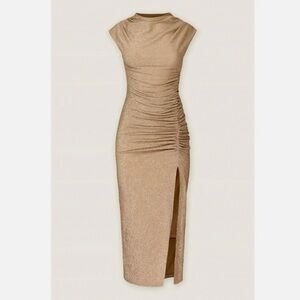 Dress Forum | New mocha & silver fitted maxi dress w/slit Women’s size L sparkly