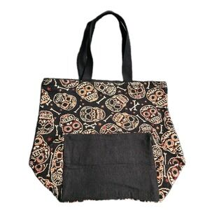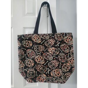 Rare Vintage Style Canvas Sugar Skull Calavera Tote Bag With Straps 23x18x9