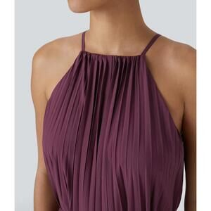 NWT Halara Breezeful Halter Tie Back Sleeveless Plisse Midi Casual Dress S