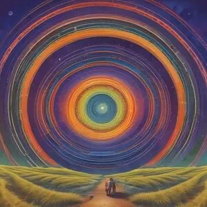 Colorful abstract art print featuring concentric circles. Perfect for adding a pop of color to any space. 8x10