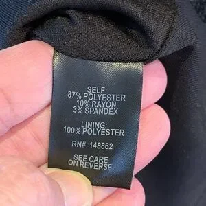 Shell: polyester/rayon/spandex; lining: polyester