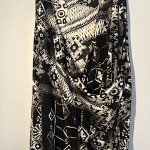 This chic sheath dress by Chico's features a sleeveless design and a scoop neckline, perfect for cocktail occasions. The black and cream abstract print adds a sophisticated touch, while the midi length offers a timeless elegance. Crafted for a flattering fit, this dress is a versatile addition to any wardrobe.