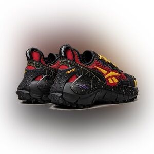 Conceived in partnership with the Harlem rapper, the A$AP Nast x Reebok Zig Kinetica 2 Edge ‘Vector Red’ applies sharply contrasting hues to a rugged lifestyle runner built for the great outdoors. Crimson textile is utilized on the upper, covered in wavy black netting and accented with a yellow 3D Vector logo. Black suede overlays reinforce the forefoot and heel, while yellow toggle laces provide a secure fit. Lightweight cushioning arrives via a Floatride Fuel midsole, supported underfoot by a Vibram Ecostep outsole with angled lugs for reliable traction on uneven terrain.