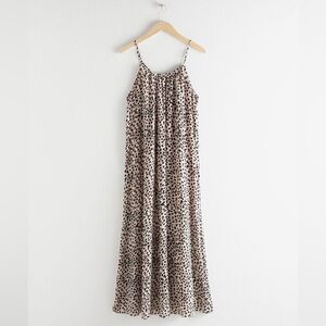 Gathered a-line maxi dress with adjustable spaghetti straps and a a-line silhouette.