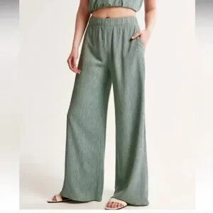 Experience effortless style with these wide-leg pants from Abercrombie & Fitch, featuring a relaxed fit in a soft green hue. The lightweight fabric and flowing design make them ideal for any occasion, ensuring comfort and elegance all day long.