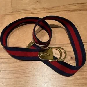 GUCCI red/blue belt with web motif and Gucci buckle in gold