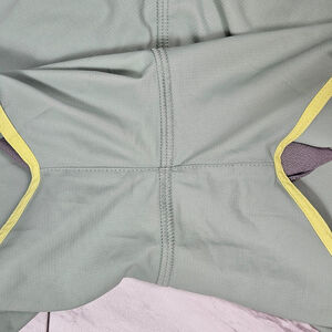 Color: Sage green with neon yellow trim and a gray waist and liner.