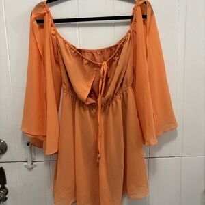 This elegant orange women's top is perfect for any occasion. Its flowing design offers both comfort and style. A must-have addition to your wardrobe.